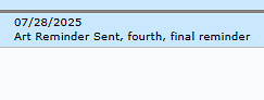 If no reminder emails have been sent, there will be a Last Art Sent date but no additional text: