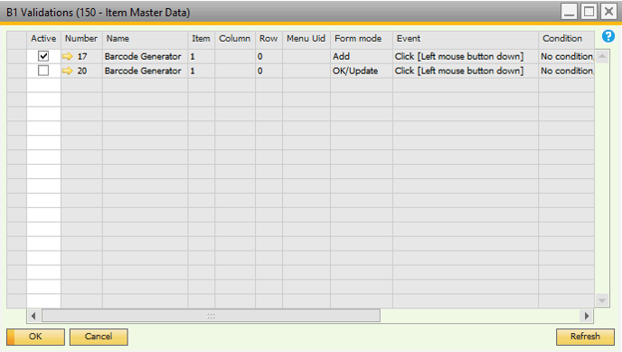 - Deactivate the OK/Update tool in the B1 Validations tab.