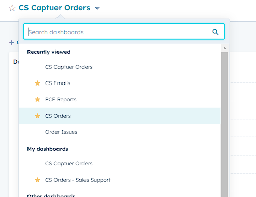 From there, you can select the dropdown error to the right of the report name to view different report dashboards. Clicking the Star to the left of the report name will mark it as a favorite.