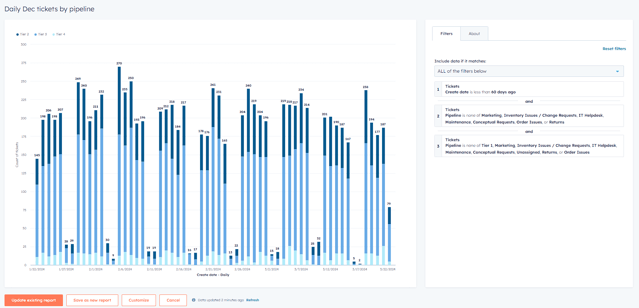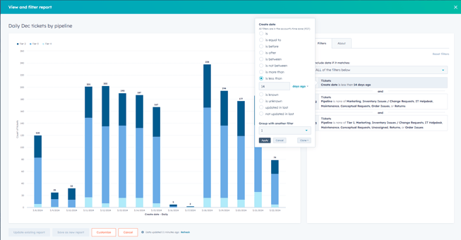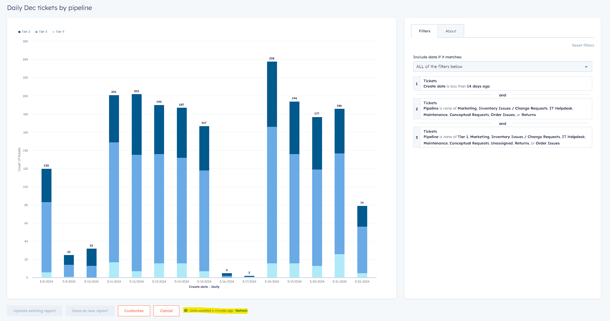 To change fields, click on the filter in question and update the information accordingly. On this report, it is currently showing 14 days of orders, but I can change it to 60 days, or a specific period of time.