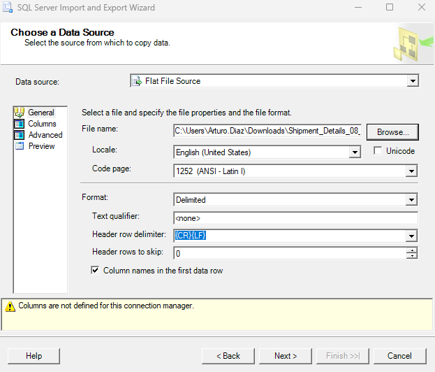 - Choose Flat File Source as the import method.