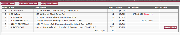- 258-WB-A (line 2) has arrived to fulfill this order, but new orders placed today would be backordered